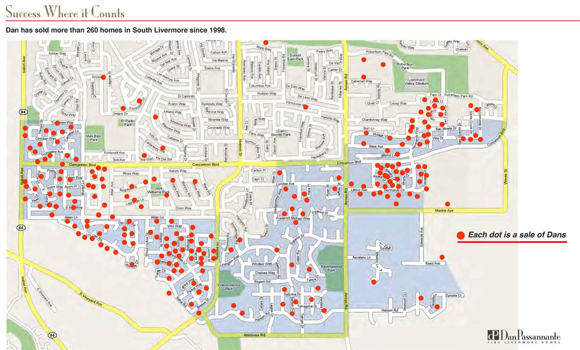 If you are preparing to sell or purchase a home, you probably know how important it is to list with a successful and experienced agent. My approach is to Specialize exclusively in South Livermore, and have done so since 1997. Please visit the neighborhood pages with school links, floor plans, and a success map showing homes I have sold in that neighborhood and throughout South Livermore. With over 260 closed sales throughout South Livermore, I bring a unique perspective and expertise that only comes through continued success throughout Livermore Valley. Whether you are buying or selling a home, you can rely on my extensive experience to help you through the process. I hope you enjoy visiting my site. If at any time you have a question regarding homes for sale in Livermore, or are considering making a move, please feel free to call or e-mail me. Best wishes and thank you for visiting my web site!